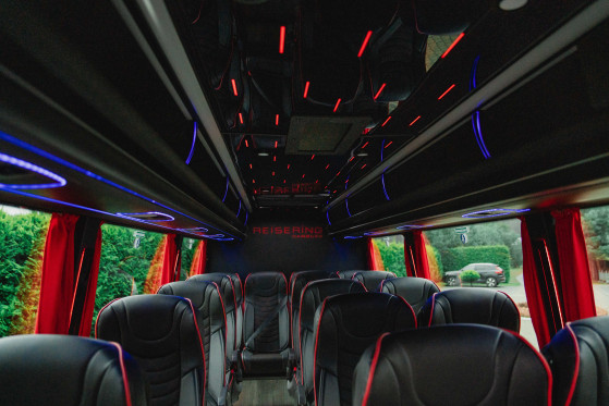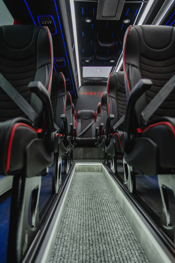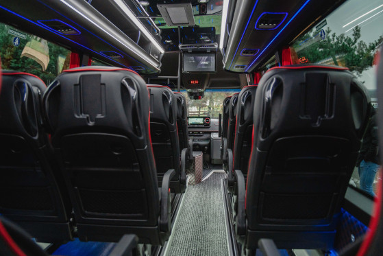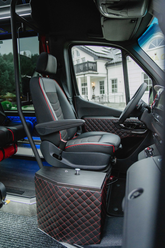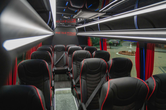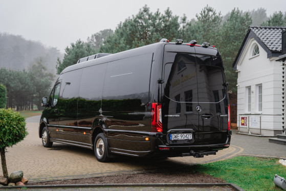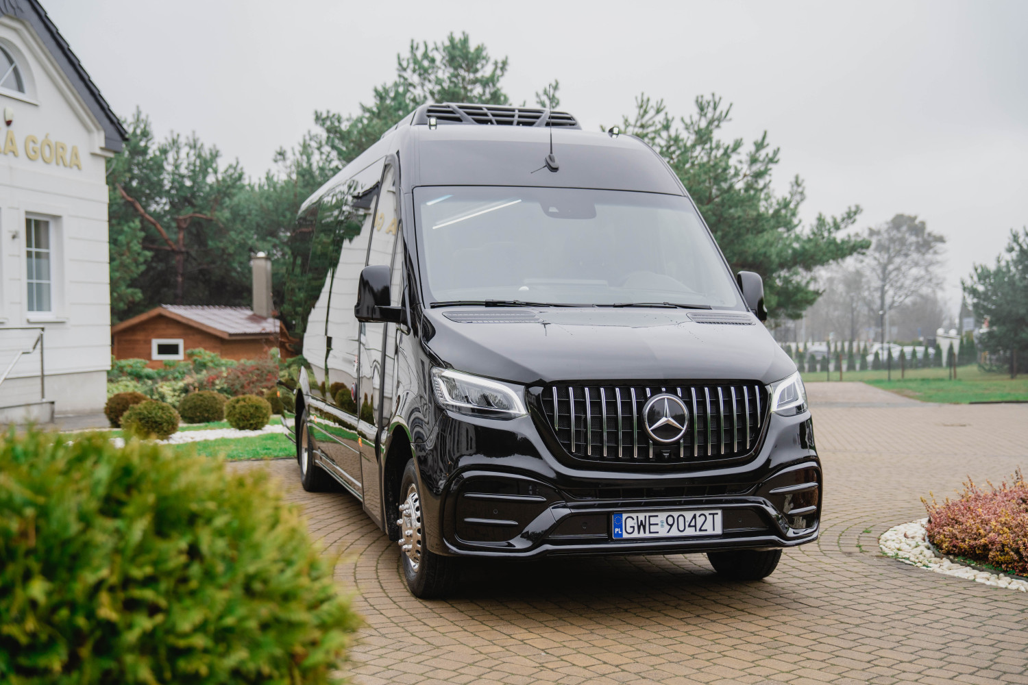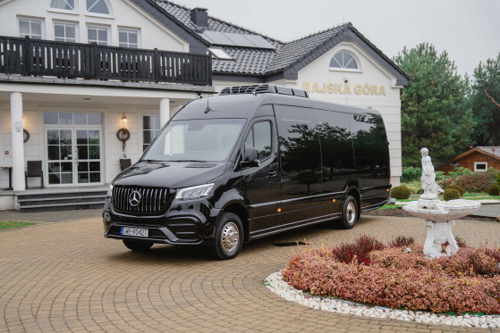 Mercedes Benz Sprinter 519 XXL in der Version „Luxury Line”  mit einer Sitzplatzkonfiguration von 17+1 Sitzen. Eine reichhaltige Innenausstattung, moderne Lösungen und zertifizierte Systeme garantieren Ihren Kunden eine sichere und komfortable Reise.