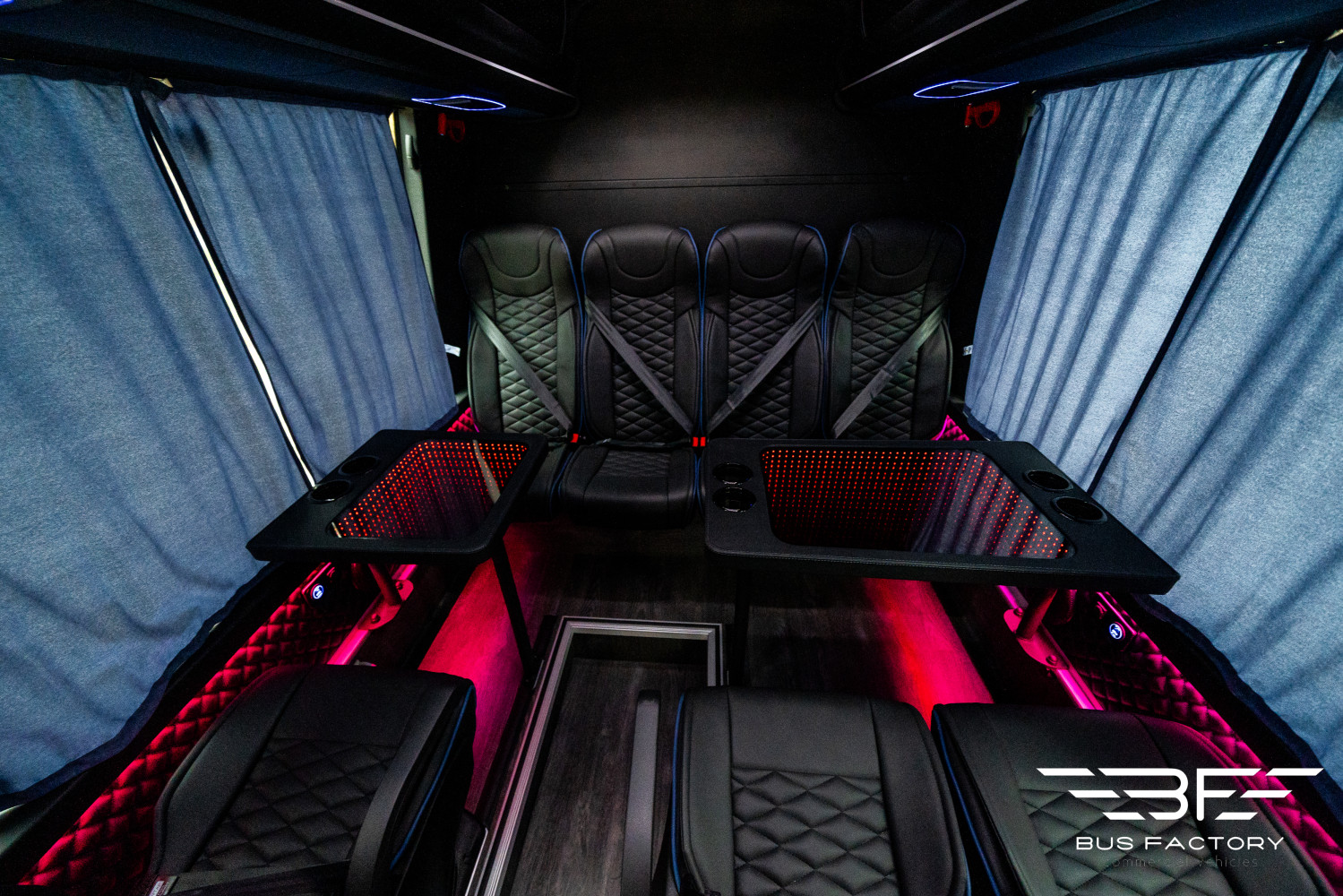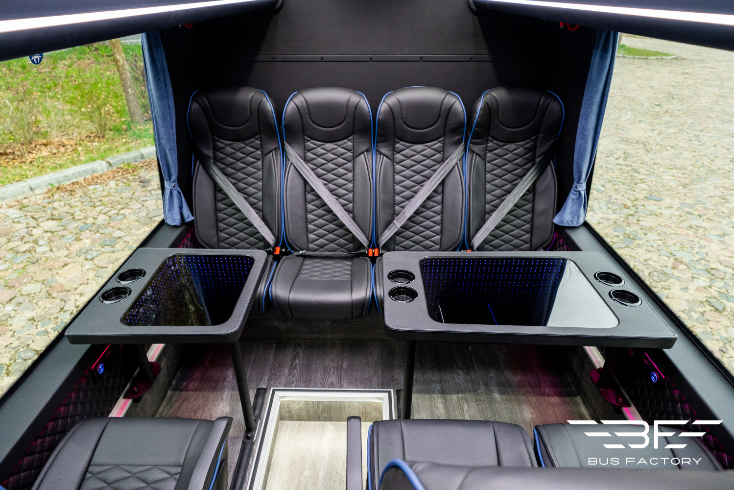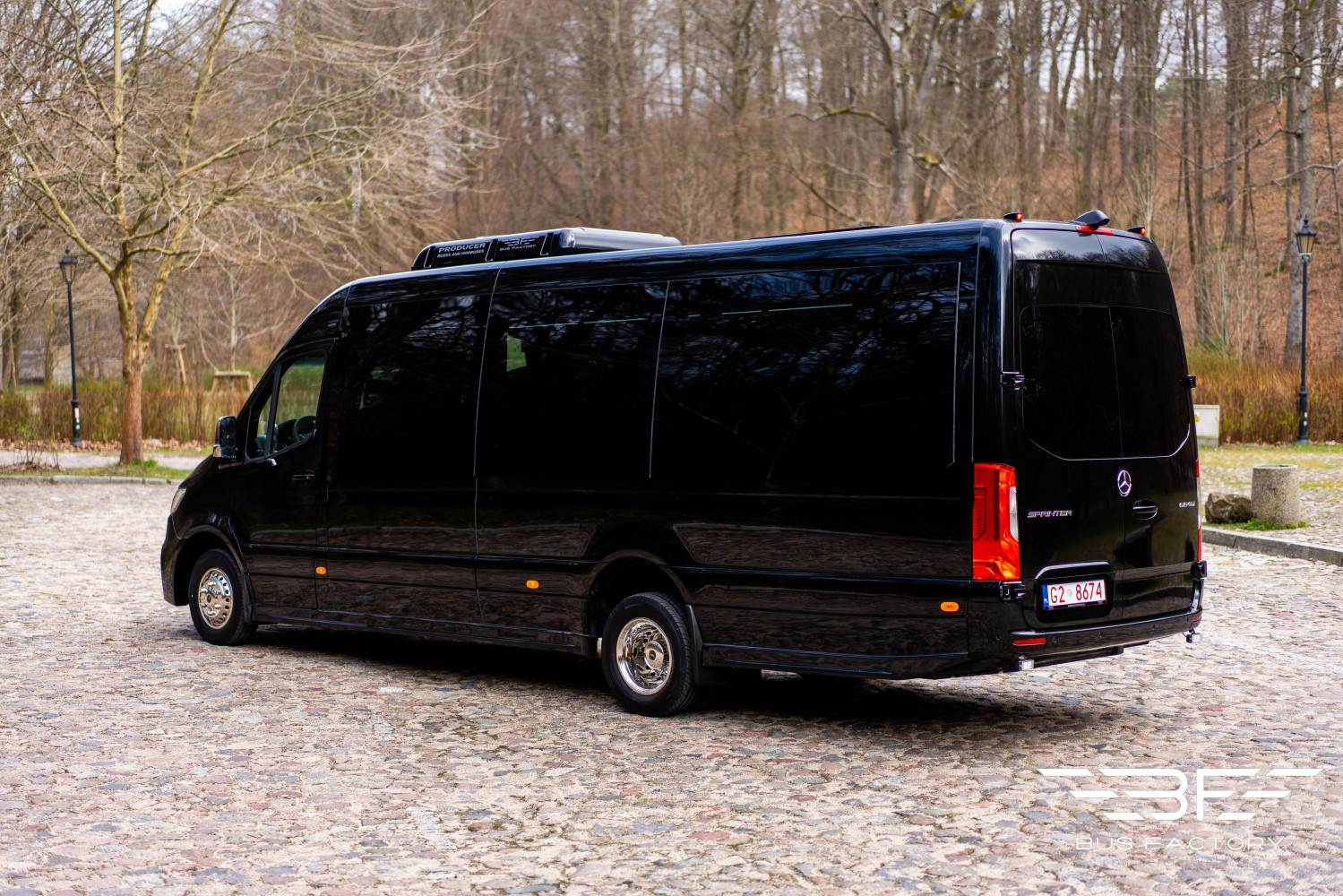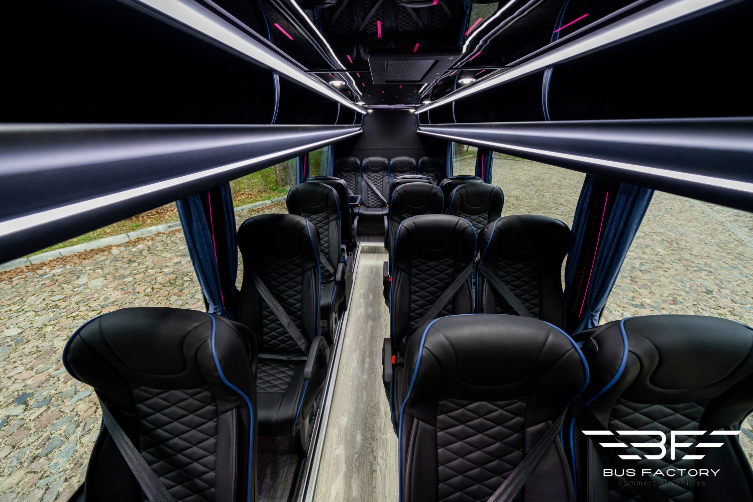 Presented bus Mercedes-Benz Sprinter 519 XXL in version "Luxury Line", in configuration for 17+1 seats and with big luggage space. Rich equipment, modern solutions and certified systems guarantee your customers a safe and comfortable journey.