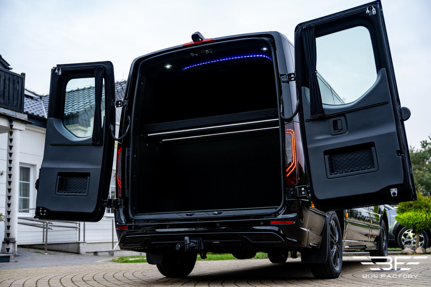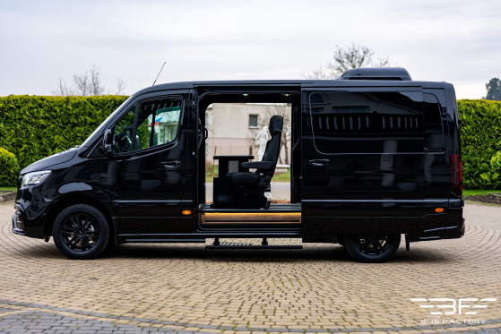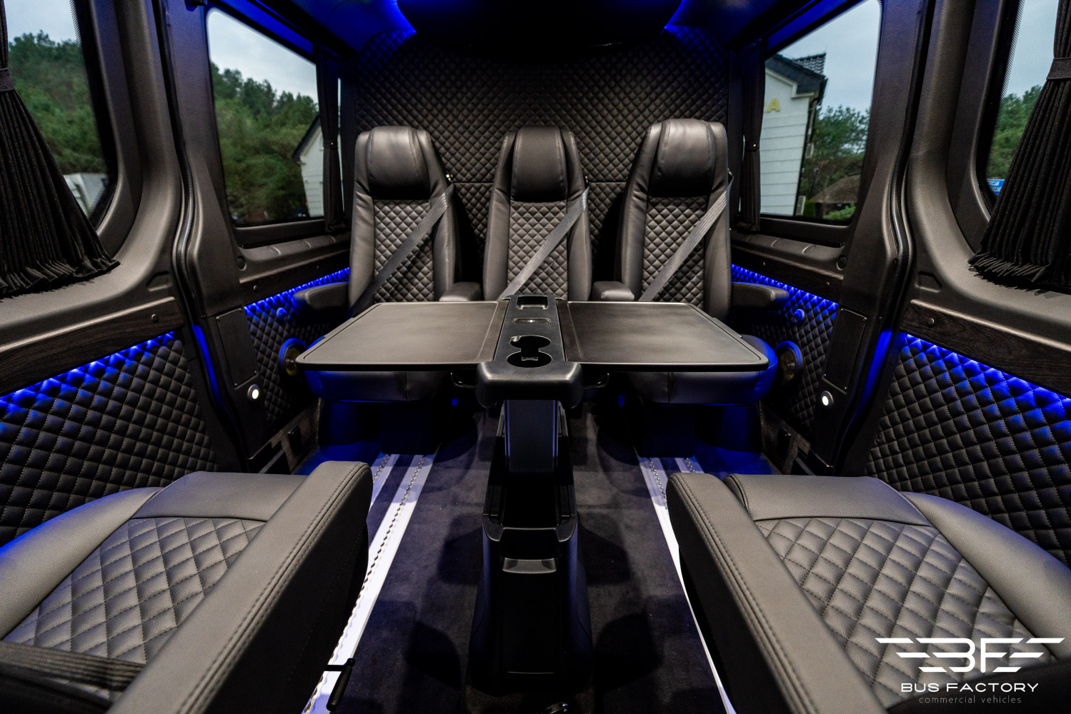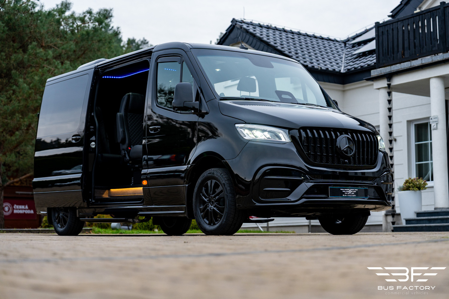Mercedes-Benz Sprinter 319 w wersji „Taxi” w układzie siedzeń 6+1. Bogate wyposażenie wnętrza, nowoczesne rozwiązania oraz atestowane systemy gwarantują Państwa Klientom bezpieczną i komfortową podróż.