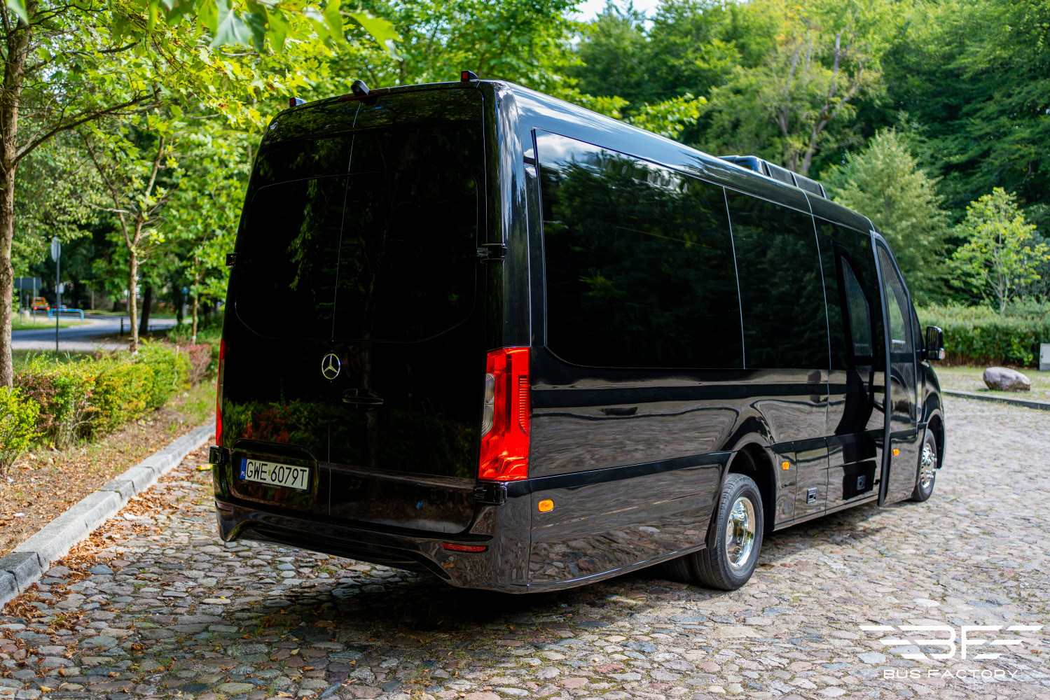 Mercedes Benz Sprinter 519 XXL in der Version „Luxury Line” mit einer Sitzplatzkonfiguration von 17+1 Sitzen. Eine reichhaltige Innenausstattung, moderne Lösungen und zertifizierte Systeme garantieren Ihren Kunden eine sichere und komfortable Reise.