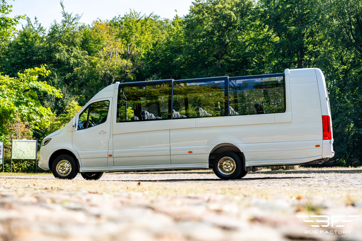 Mercedes Benz Sprinter 519 XXL in der Version „Cabrio” in einer Konfiguration mit 23+1 Sitzplätzen. Eine reichhaltige Innenausstattung, moderne Lösungen und zertifizierte Systeme garantieren Ihren Kunden eine sichere und komfortable Reise.