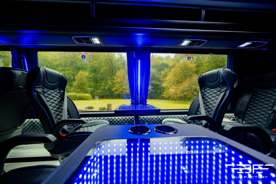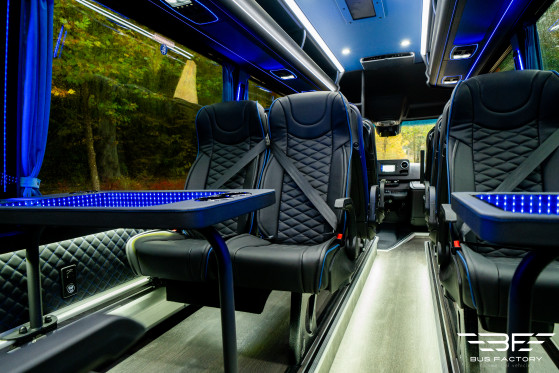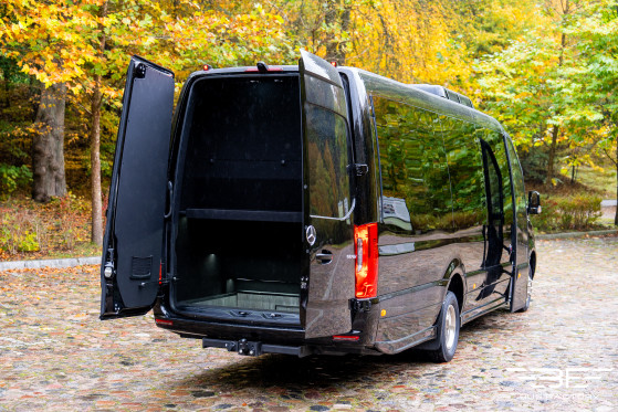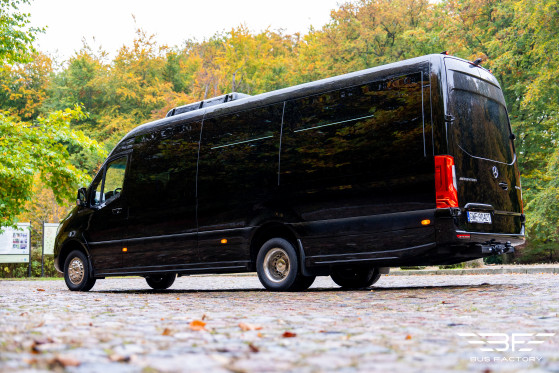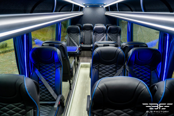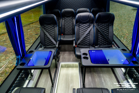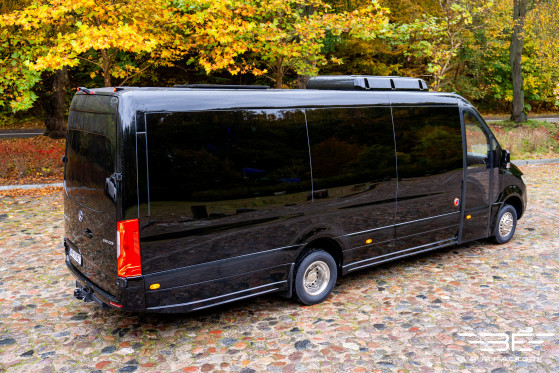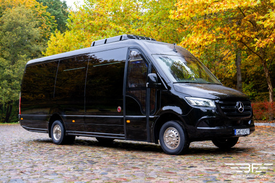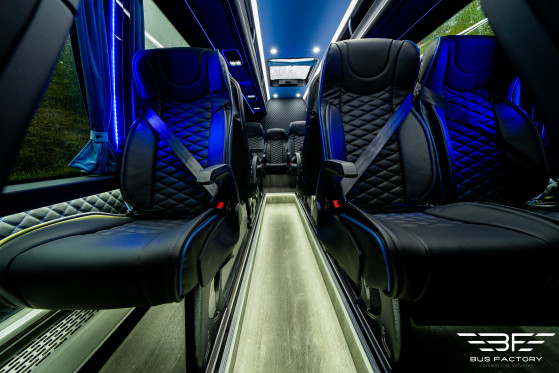 Mercedes Benz Sprinter 519 XXL in der Version „Luxury Line”  mit einer Sitzplatzkonfiguration von 17+1 Sitzen. Eine reichhaltige Innenausstattung, moderne Lösungen und zertifizierte Systeme garantieren Ihren Kunden eine sichere und komfortable Reise.