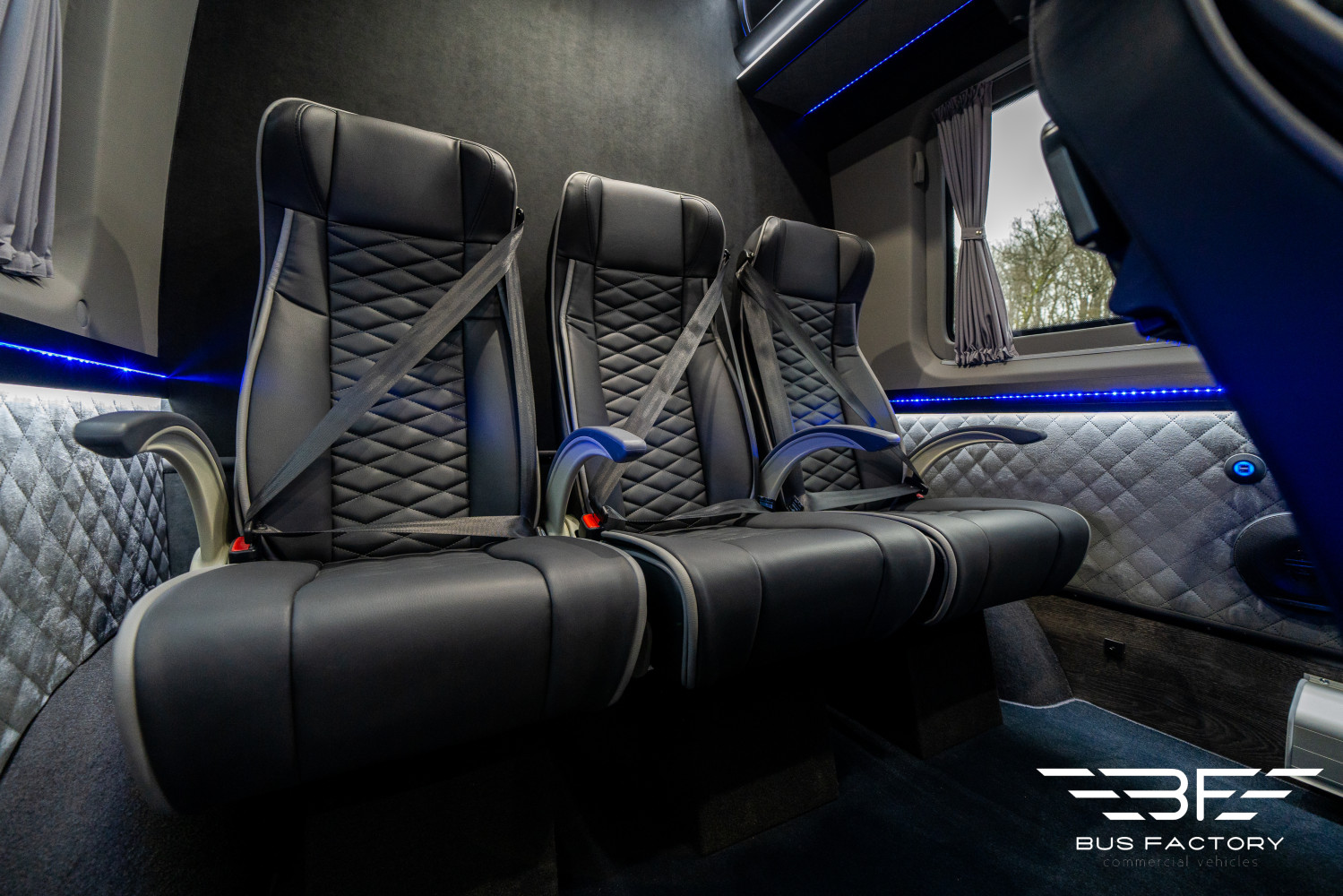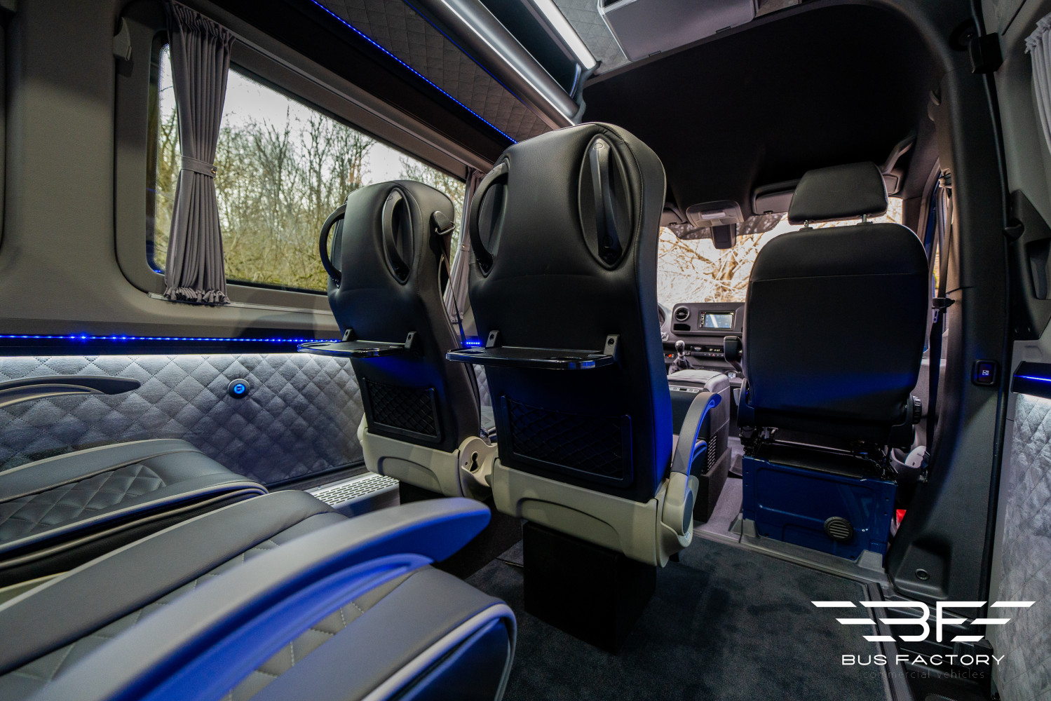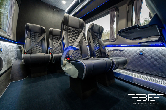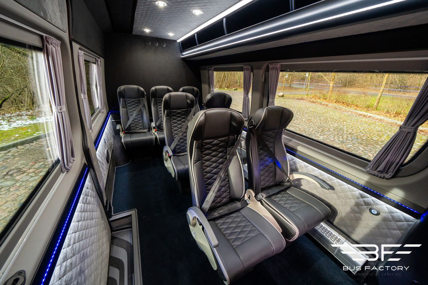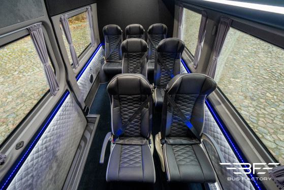 Mercedes Benz Sprinter 319 in der Version „Taxi” mit einer Konfiguration von 8+1 Sitzen. Eine reichhaltige Innenausstattung, moderne Lösungen und zertifizierte Systeme garantieren Ihren Kunden eine sichere und komfortable Reise.