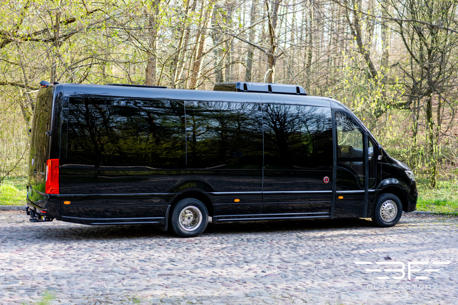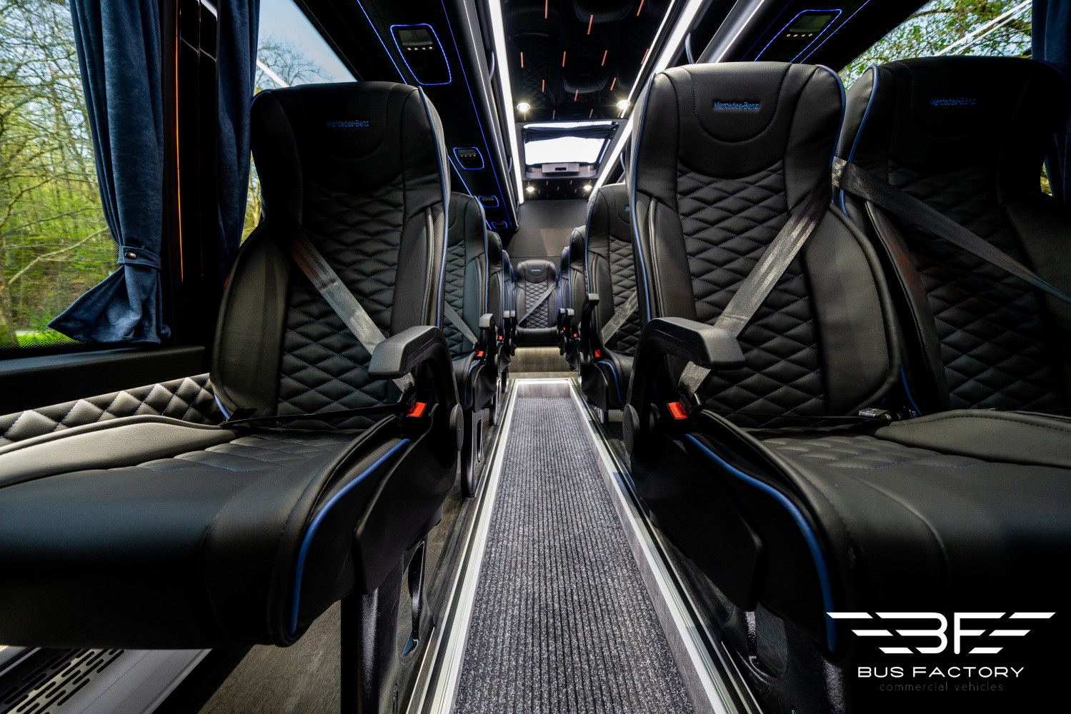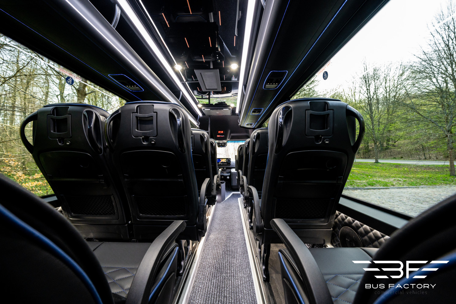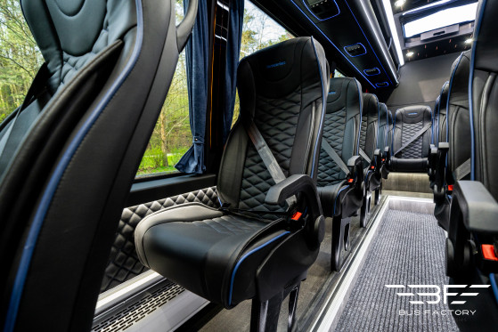 Mercedes Benz Sprinter 519 XXL in der Version „Luxury Line” mit einer Sitzplatzkonfiguration von 20+1 Sitzen. Eine reichhaltige Innenausstattung, moderne Lösungen und zertifizierte Systeme garantieren Ihren Kunden eine sichere und komfortable Reise.
