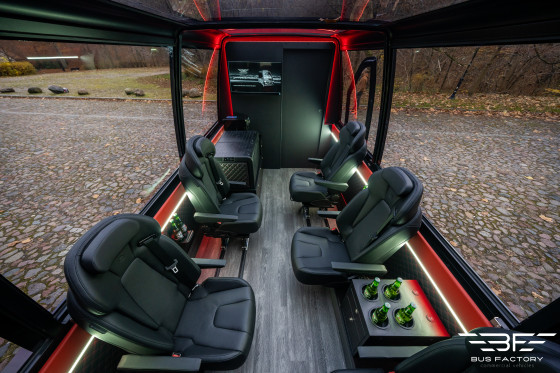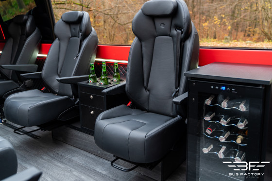 Mercedes Benz Sprinter 519 in der Version „Cabrio” mit einer Konfiguration von 8+1 Sitzen. Eine reichhaltige Innenausstattung, moderne Lösungen und zertifizierte Systeme garantieren Ihren Kunden eine sichere und komfortable Reise.