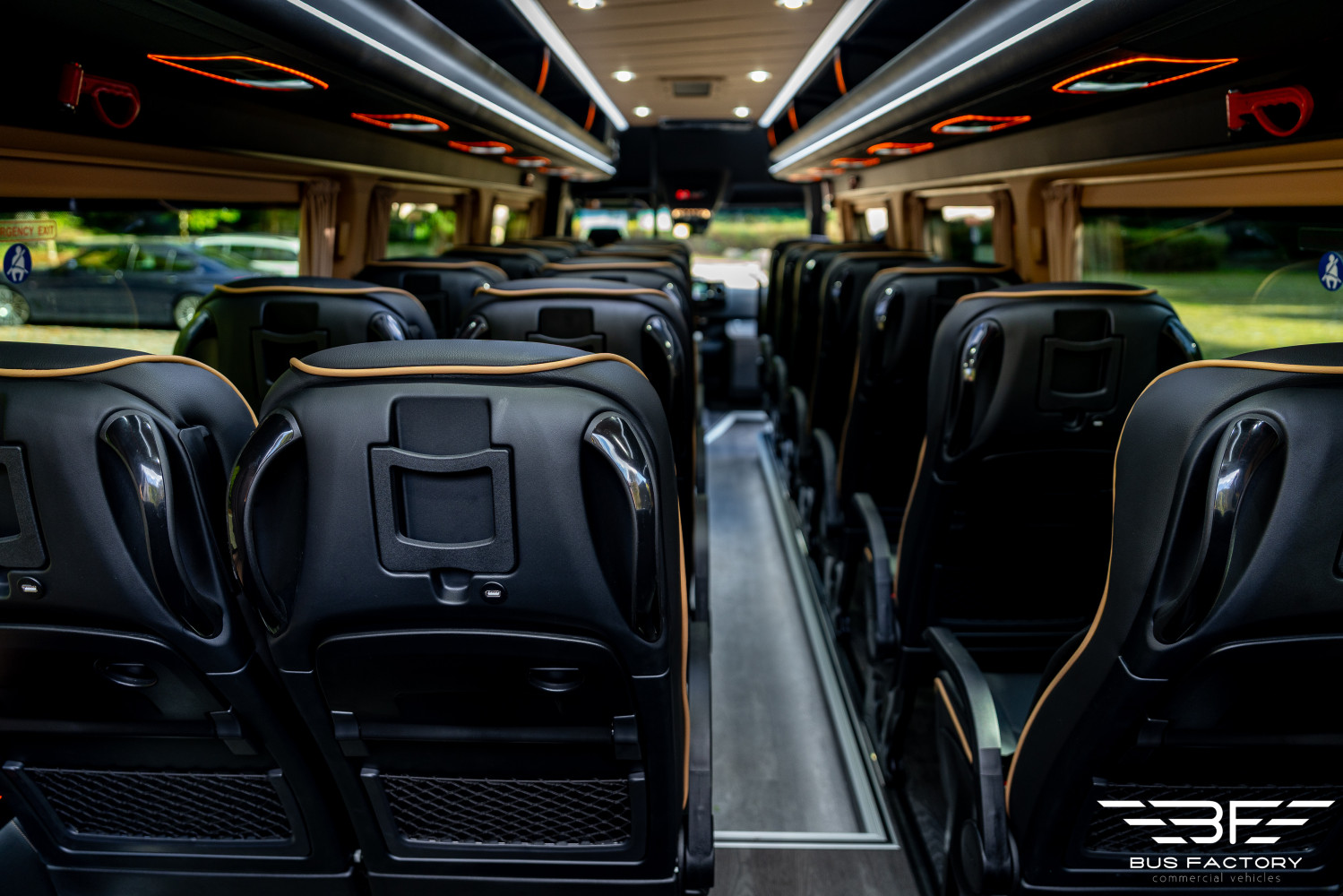 Mercedes Benz Sprinter 519 XXL in der Version „Tourist Line” in einer Konfiguration von 23+1 Sitzen. Eine vielfältige Innenausstattung, moderne Lösungen und zertifizierte Systeme garantieren Ihren Kunden eine sichere und komfortable Reise.