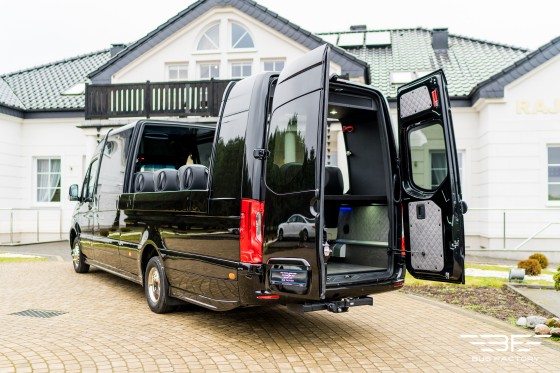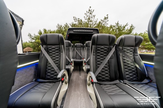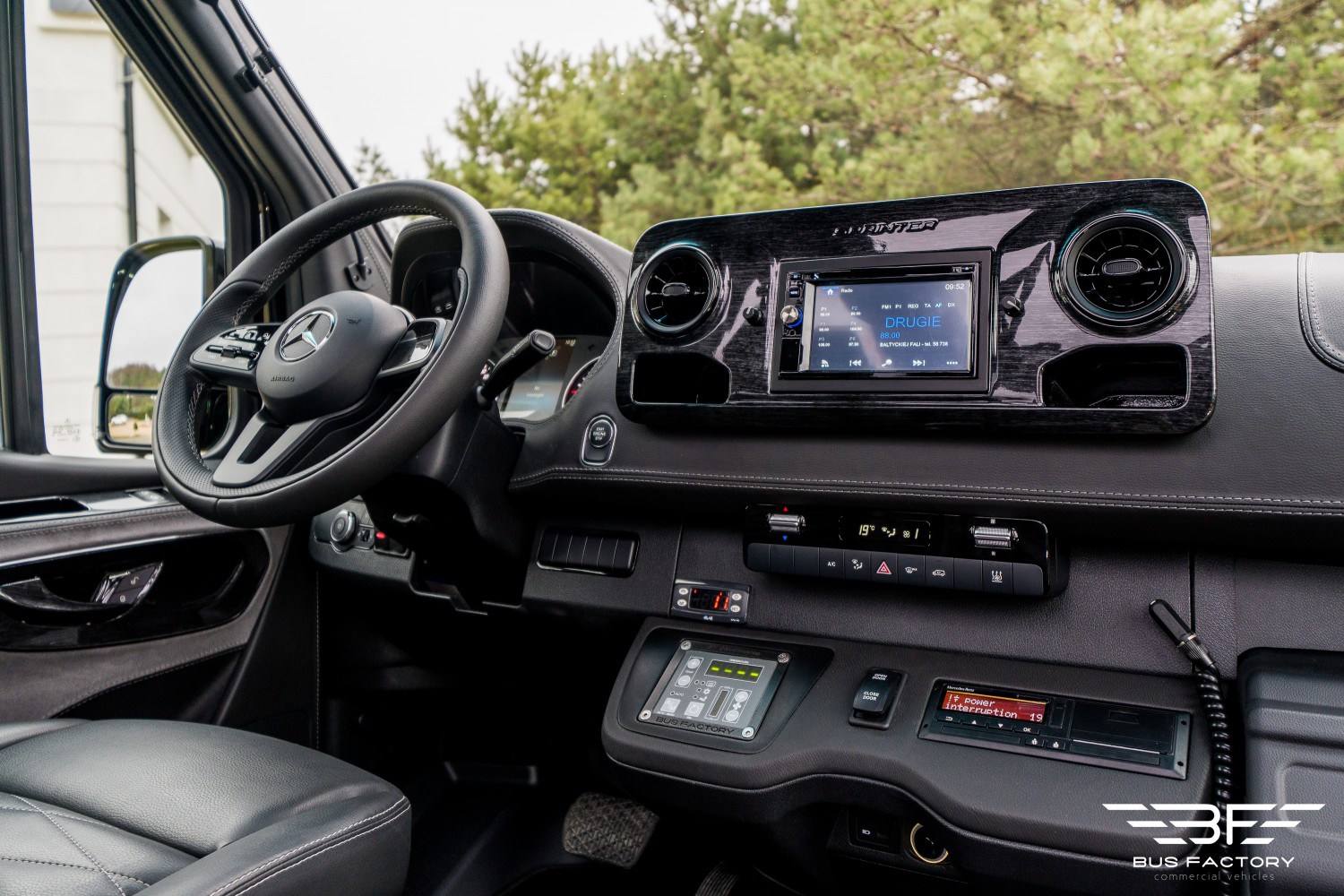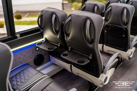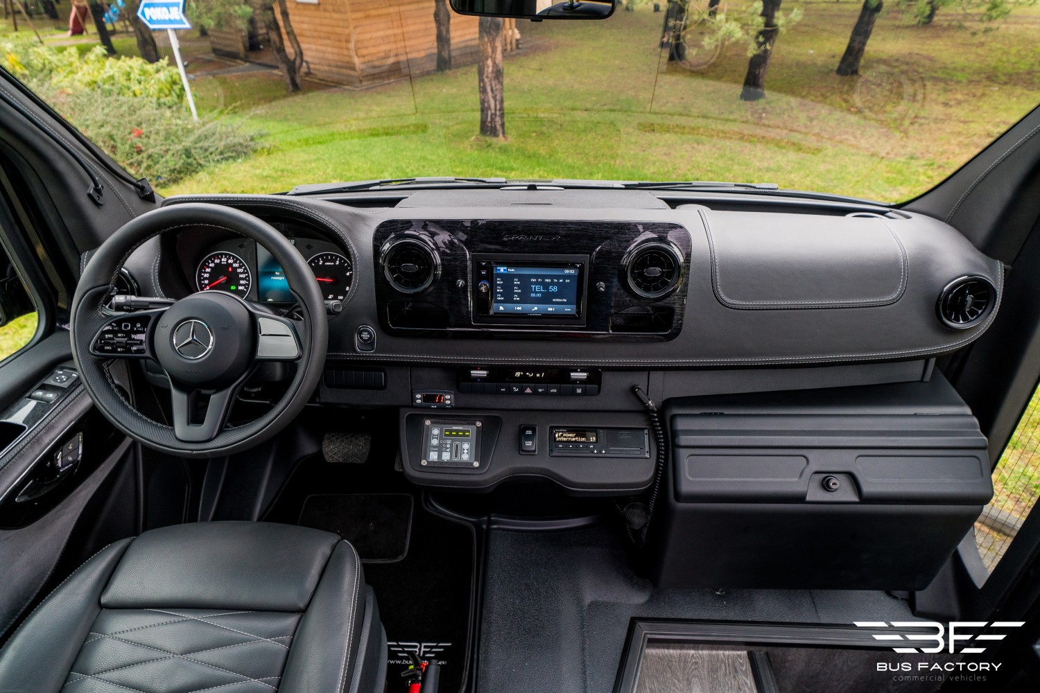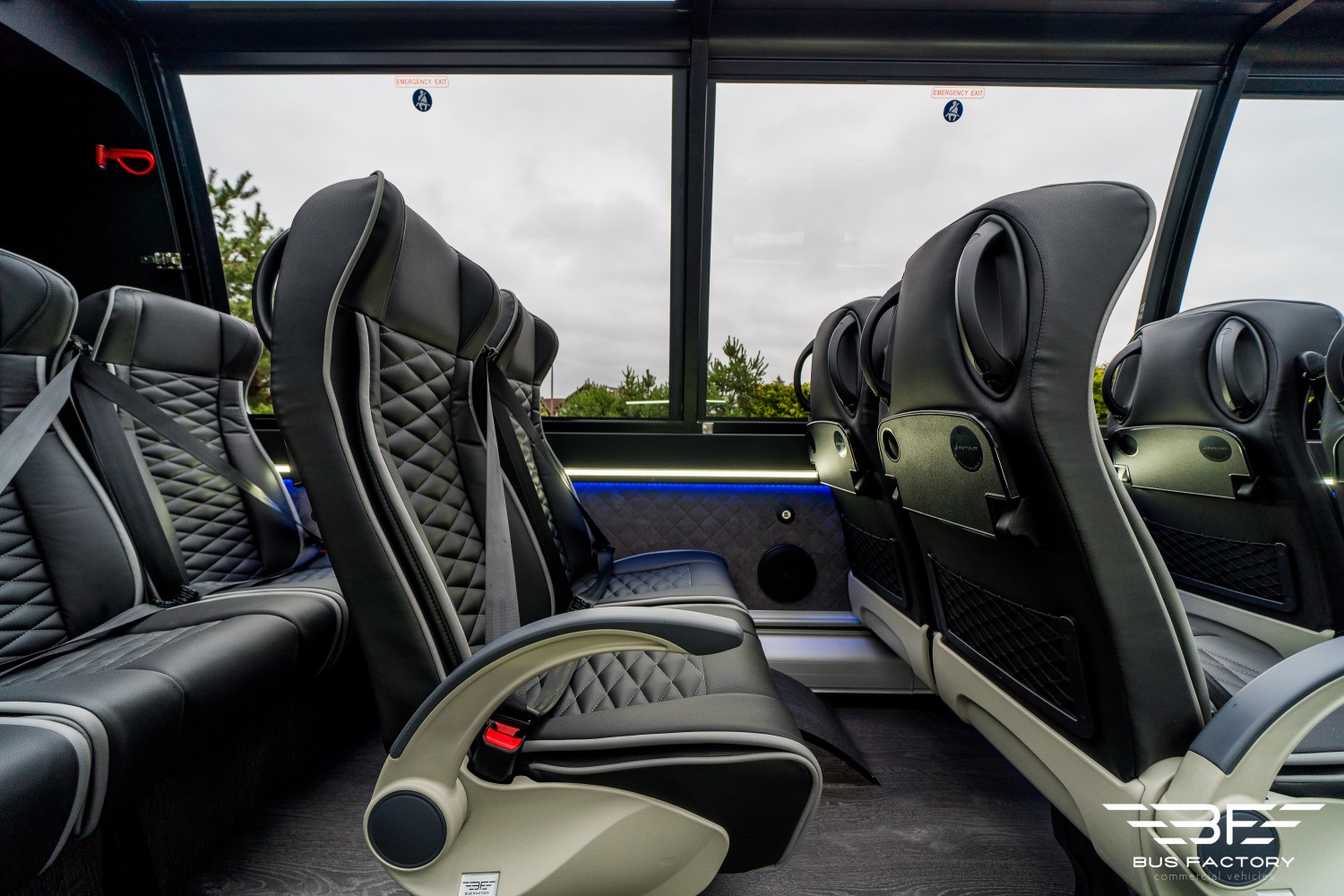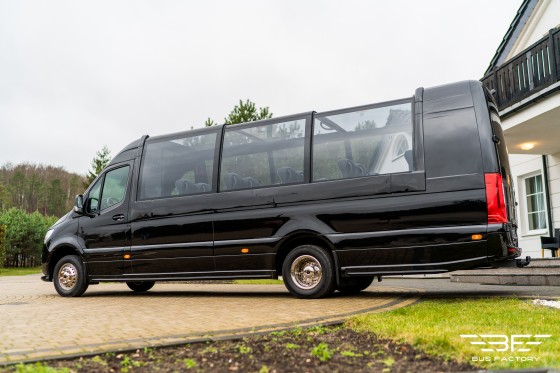 Mercedes-Benz Sprinter 519 XXL w wersji „Cabrio” w układzie siedzeń 16+1. Bogate wyposażenie wnętrza, nowoczesne rozwiązania oraz atestowane systemy gwarantują Państwa Klientom bezpieczną i komfortową podróż.