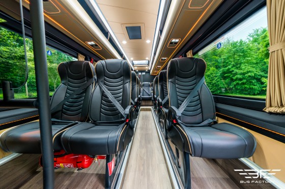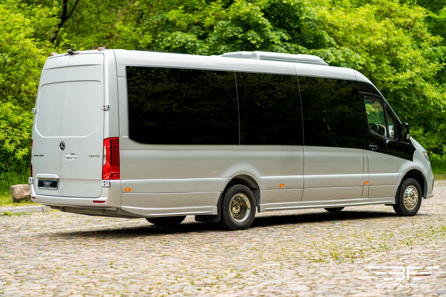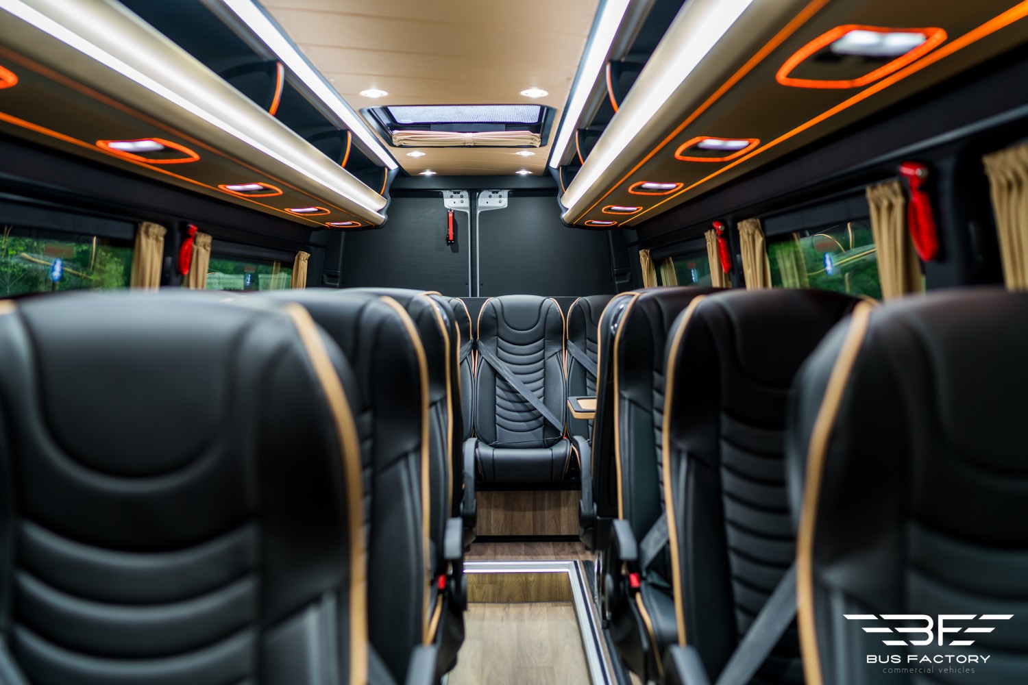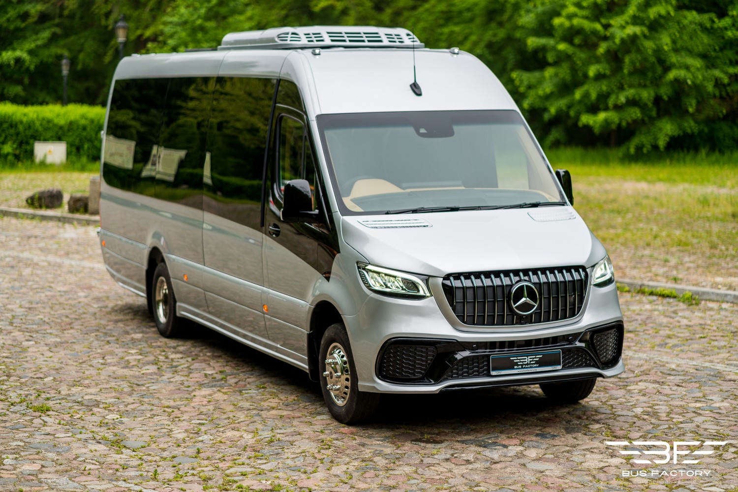 Mercedes-Benz Sprinter 519 XXL w wersji „Luxury Line” w układzie siedzeń 16+1 z dużym bagażnikiem. Bogate wyposażenie wnętrza, nowoczesne rozwiązania oraz atestowane systemy gwarantują Państwa Klientom bezpieczną i komfortową podróż.