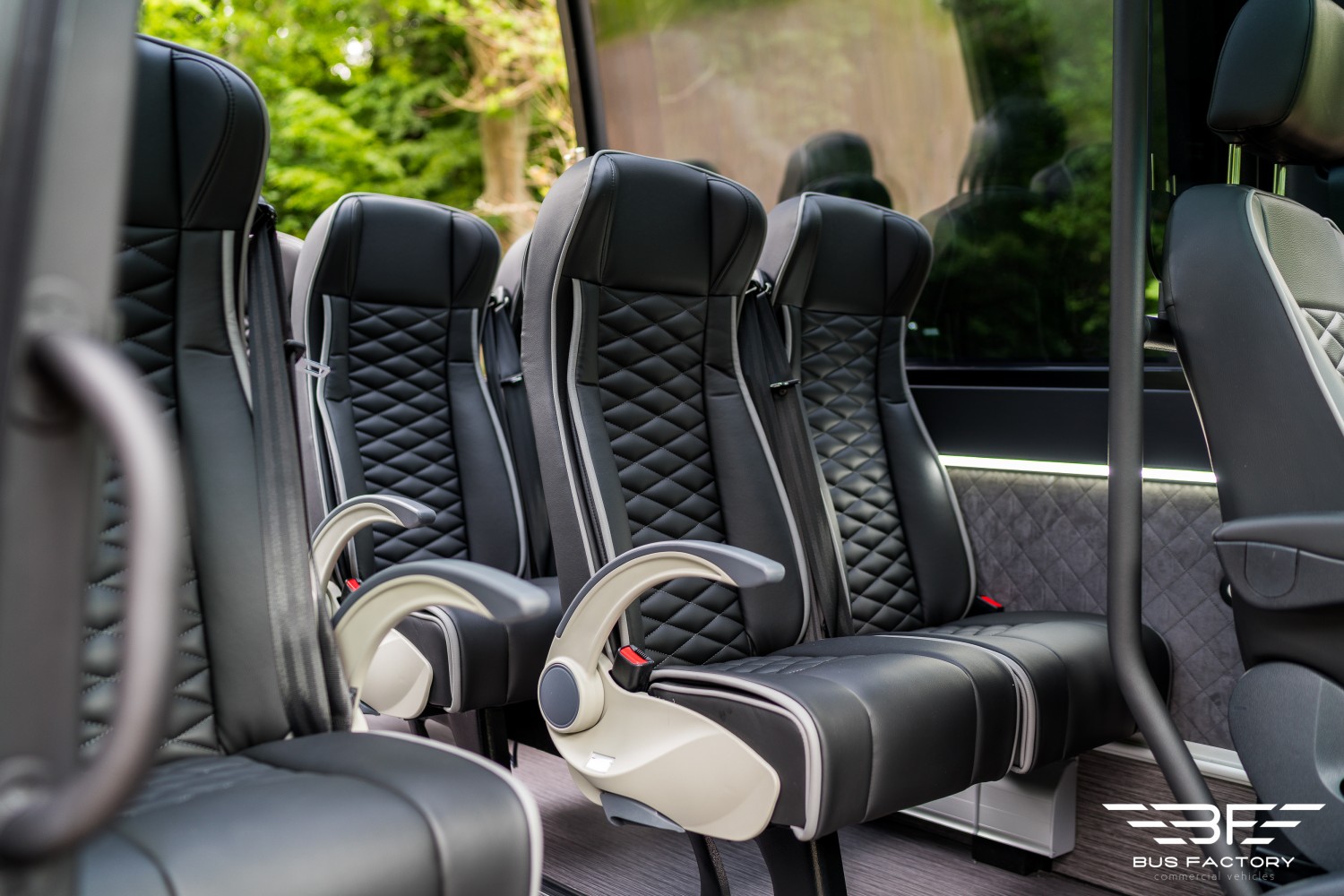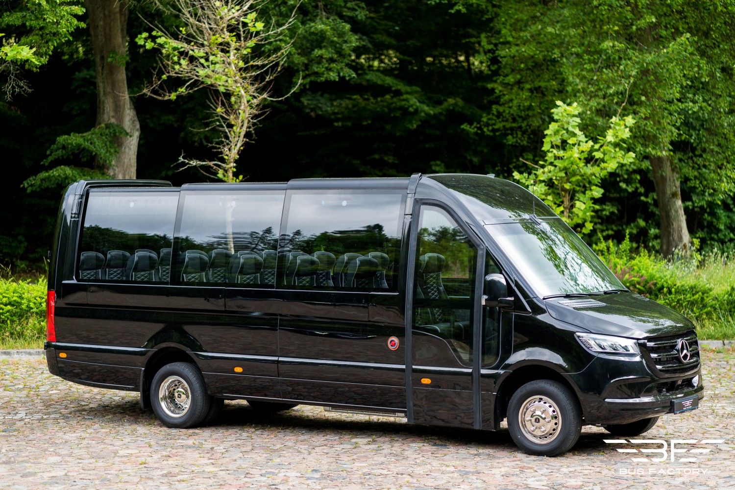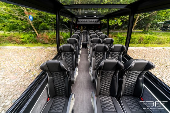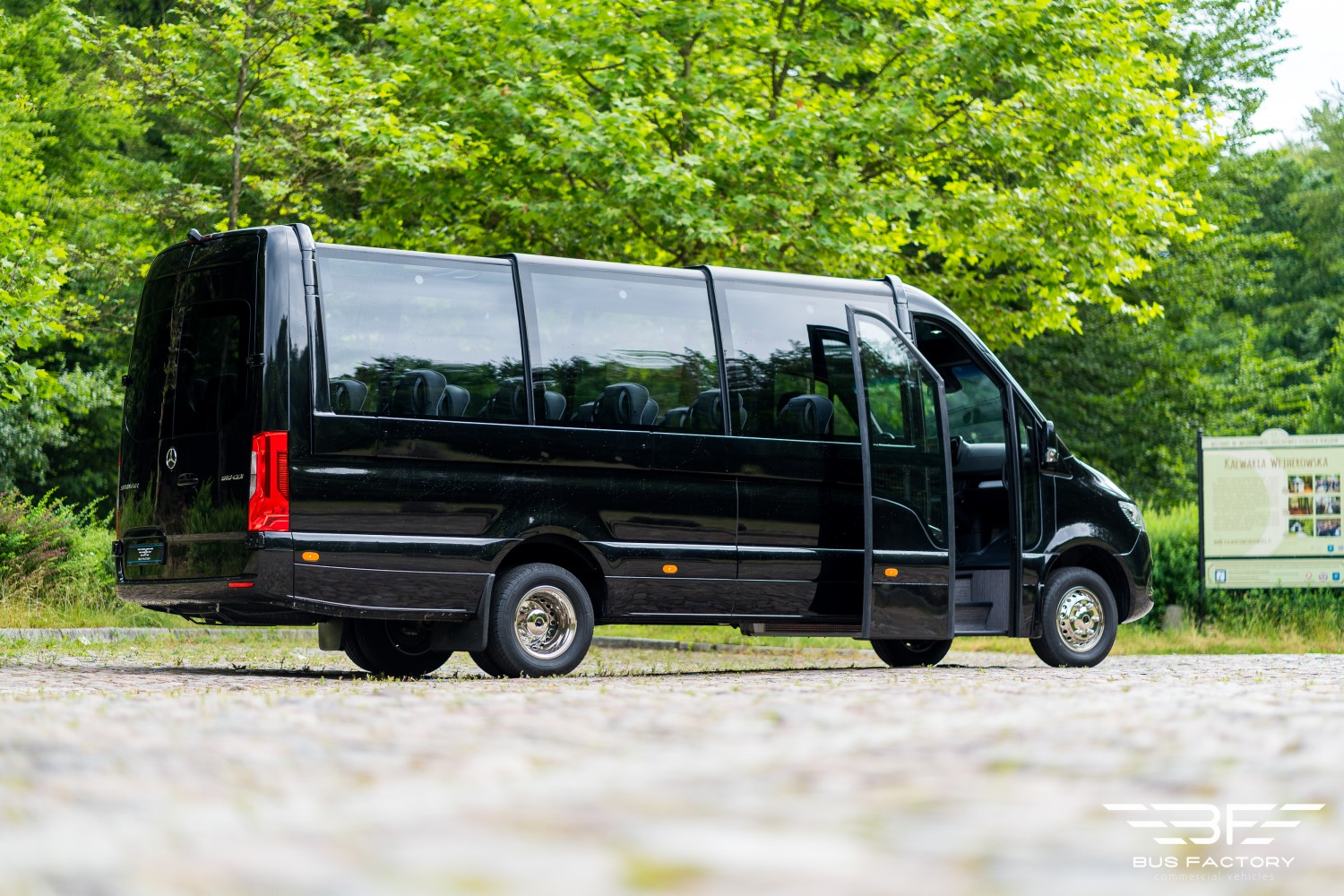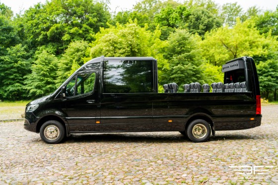 Mercedes-Benz Sprinter 519 w wersji „Cabrio” w układzie siedzeń 19+1. Bogate wyposażenie wnętrza, nowoczesne rozwiązania oraz atestowane systemy gwarantują Państwa Klientom bezpieczną i komfortową podróż.