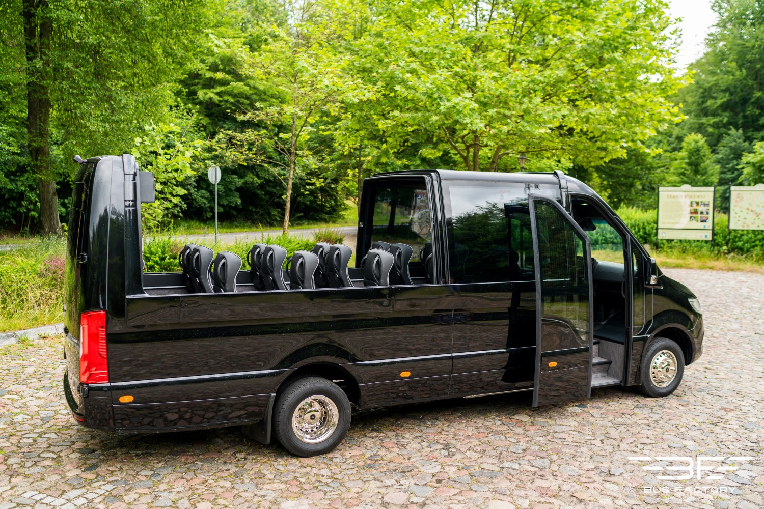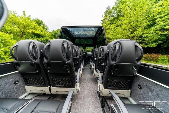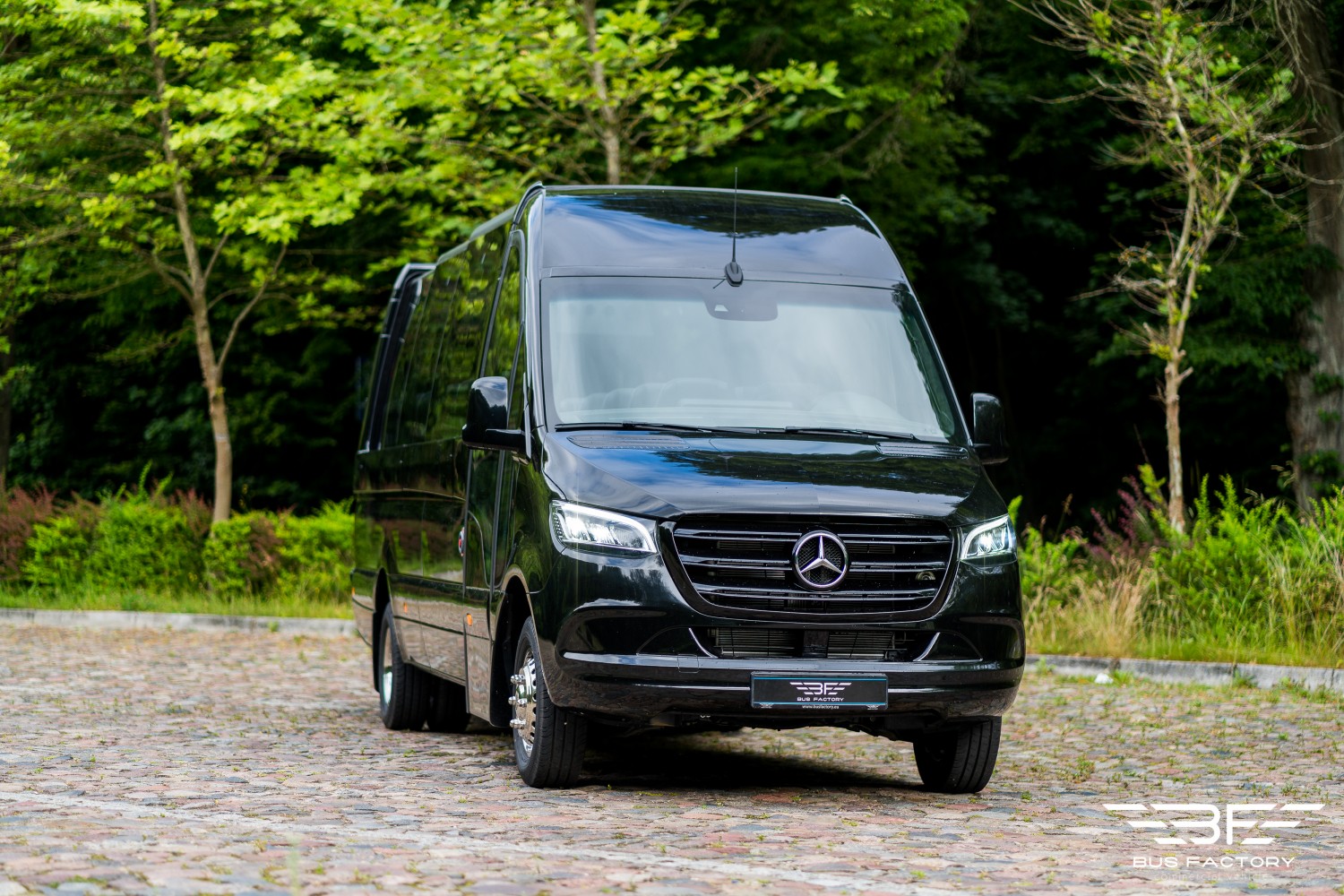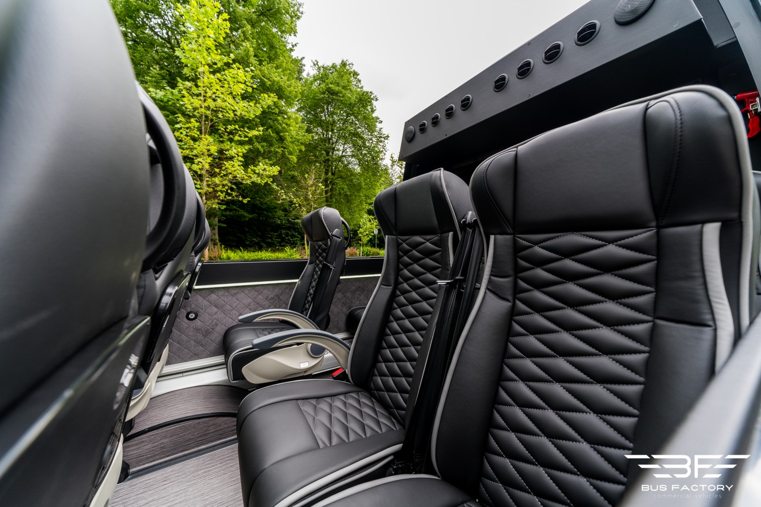 Mercedes-Benz Sprinter 519 w wersji „Cabrio” w układzie siedzeń 19+1. Bogate wyposażenie wnętrza, nowoczesne rozwiązania oraz atestowane systemy gwarantują Państwa Klientom bezpieczną i komfortową podróż.
