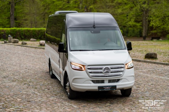 Mercedes-Benz Sprinter 519 XXL w wersji „Skylite GT” w układzie siedzeń 10+1. Bogate wyposażenie wnętrza, nowoczesne rozwiązania oraz atestowane systemy gwarantują Państwa Klientom bezpieczną i komfortową podróż.