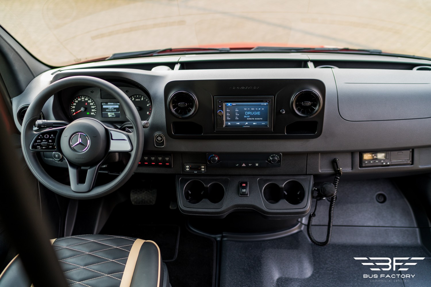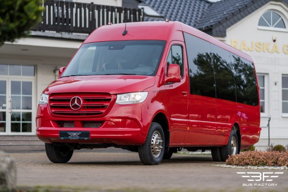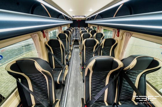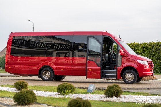 Mercedes-Benz Sprinter 519 XXL w wersji „Tourist Line” w układzie siedzeń 20+1 z dużym bagażnikiem. Bogate wyposażenie wnętrza, nowoczesne rozwiązania oraz atestowane systemy gwarantują Państwa Klientom bezpieczną i komfortową podróż.