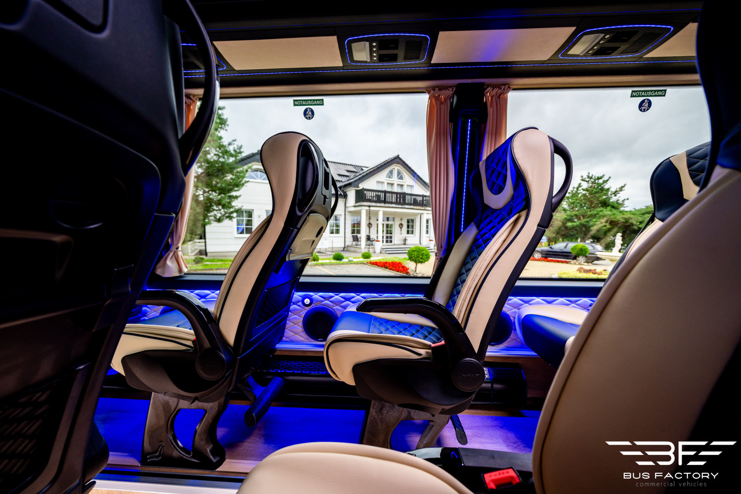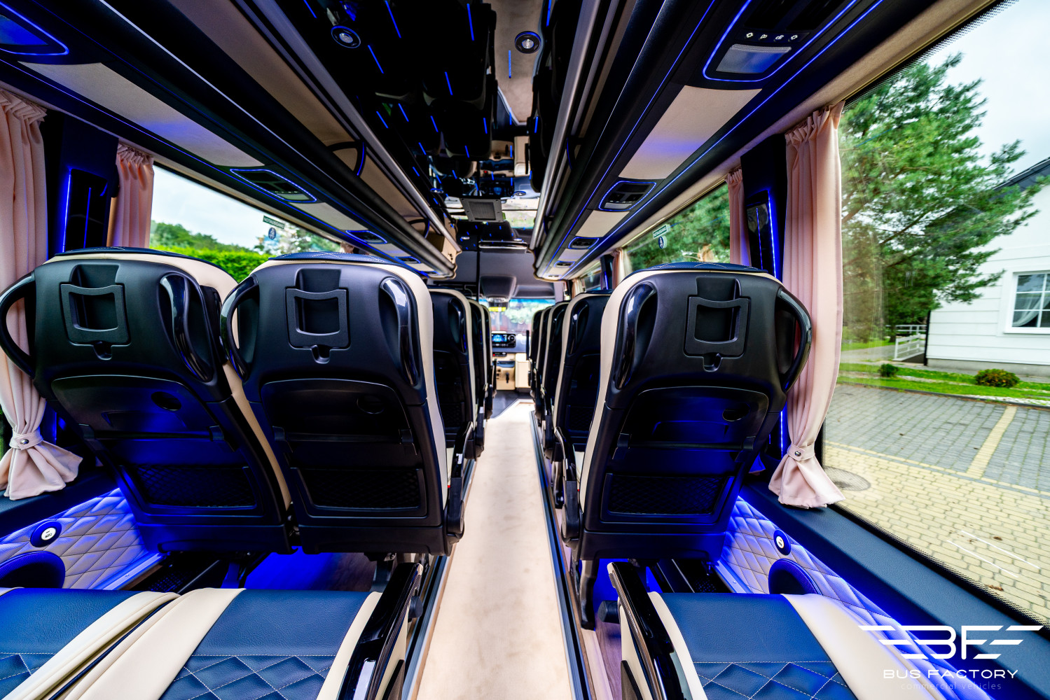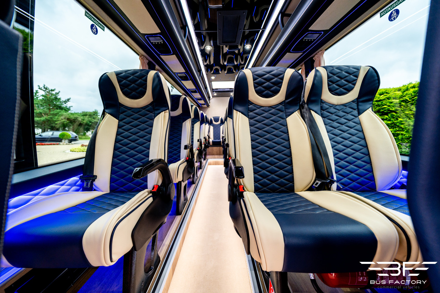 Mercedes-Benz Sprinter 519 XXL w wersji „Luxury Line” w układzie siedzeń 20+1 z dużym bagażnikiem. Bogate wyposażenie wnętrza, nowoczesne rozwiązania oraz atestowane systemy gwarantują Państwa Klientom bezpieczną i komfortową podróż.