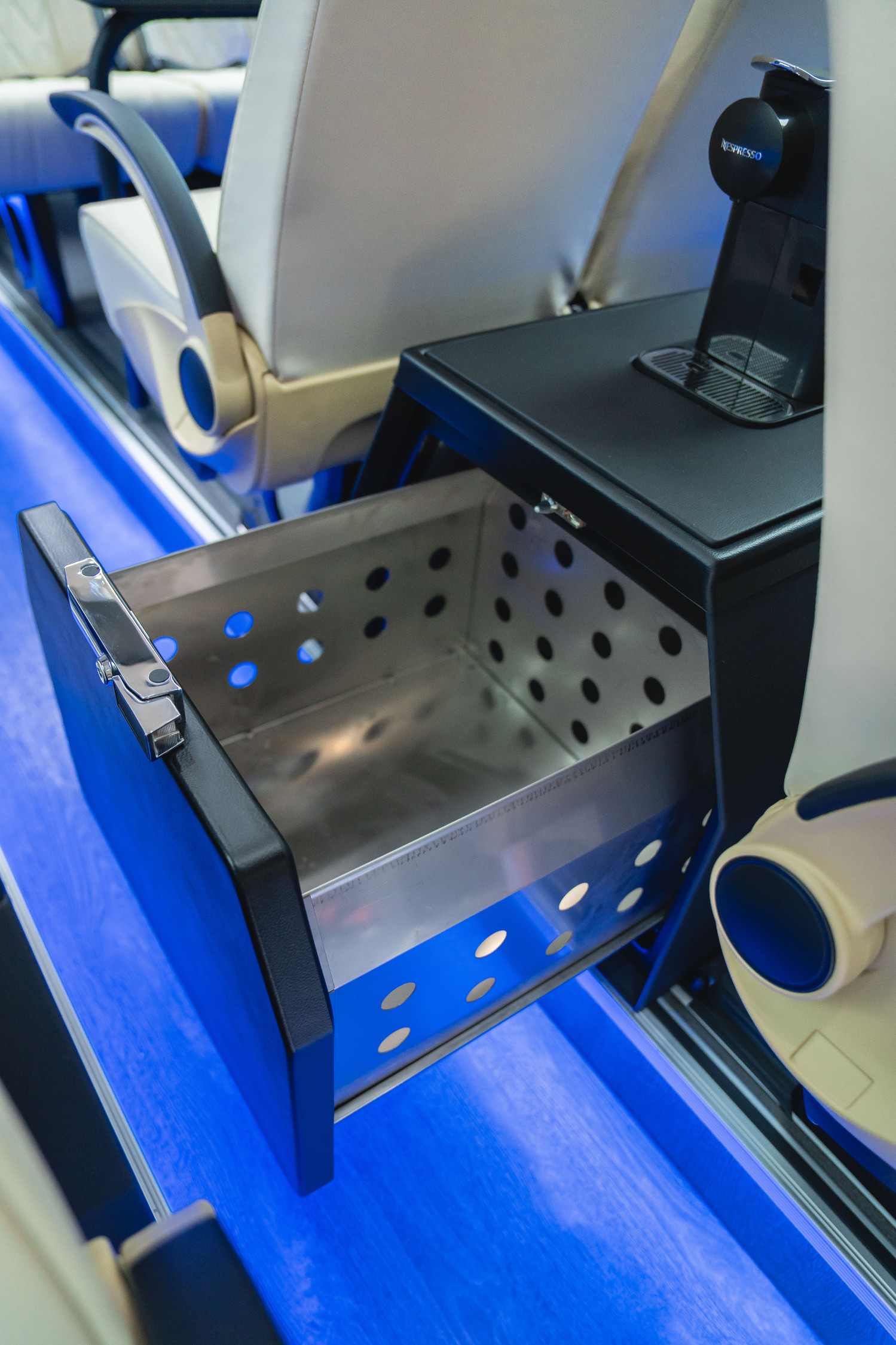Mercedes-Benz Sprinter 519 XXL w wersji „Luxury Line” w układzie siedzeń 16+1 z dużym bagażnikiem. Bogate wyposażenie wnętrza, nowoczesne rozwiązania oraz atestowane systemy gwarantują Państwa Klientom bezpieczną i komfortową podróż.