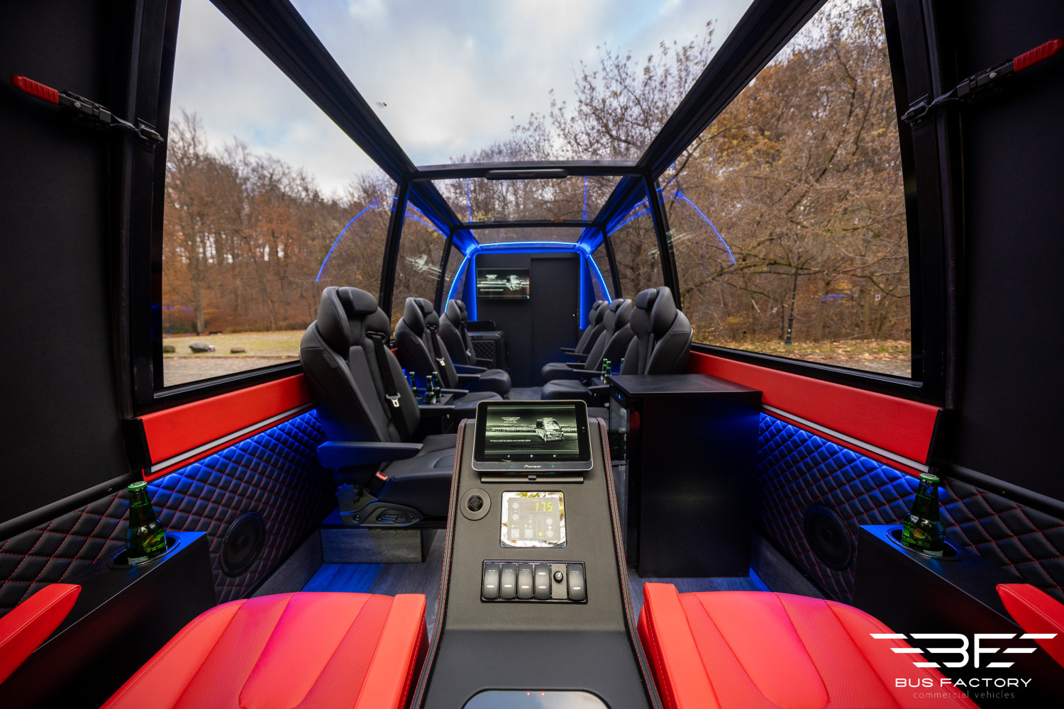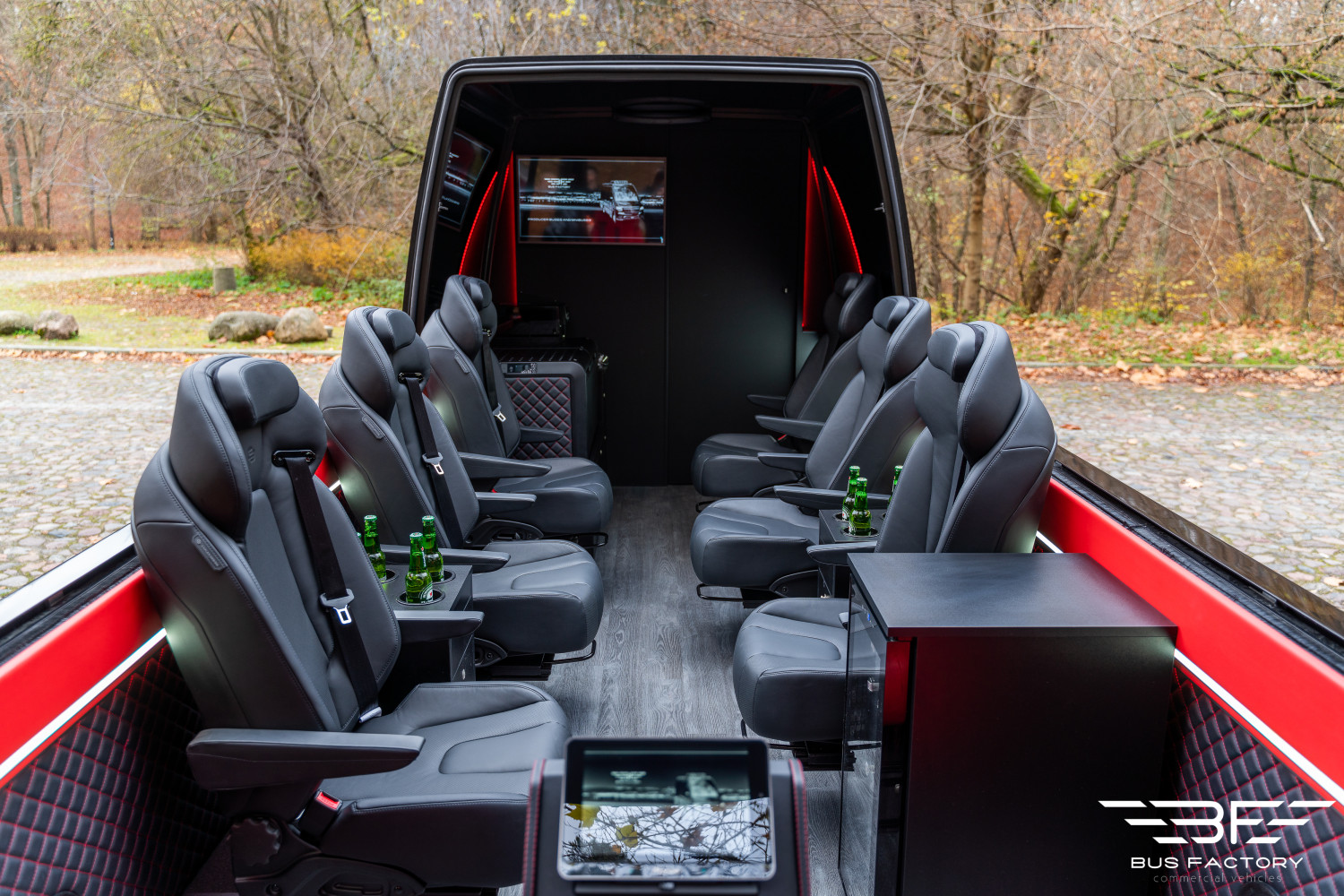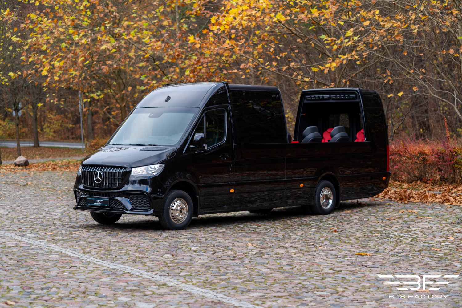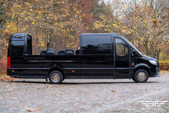 Mercedes-Benz Sprinter 519 w wersji „Cabrio” w układzie siedzeń 8+1. Bogate wyposażenie wnętrza, nowoczesne rozwiązania oraz atestowane systemy gwarantują Państwa Klientom bezpieczną i komfortową podróż.