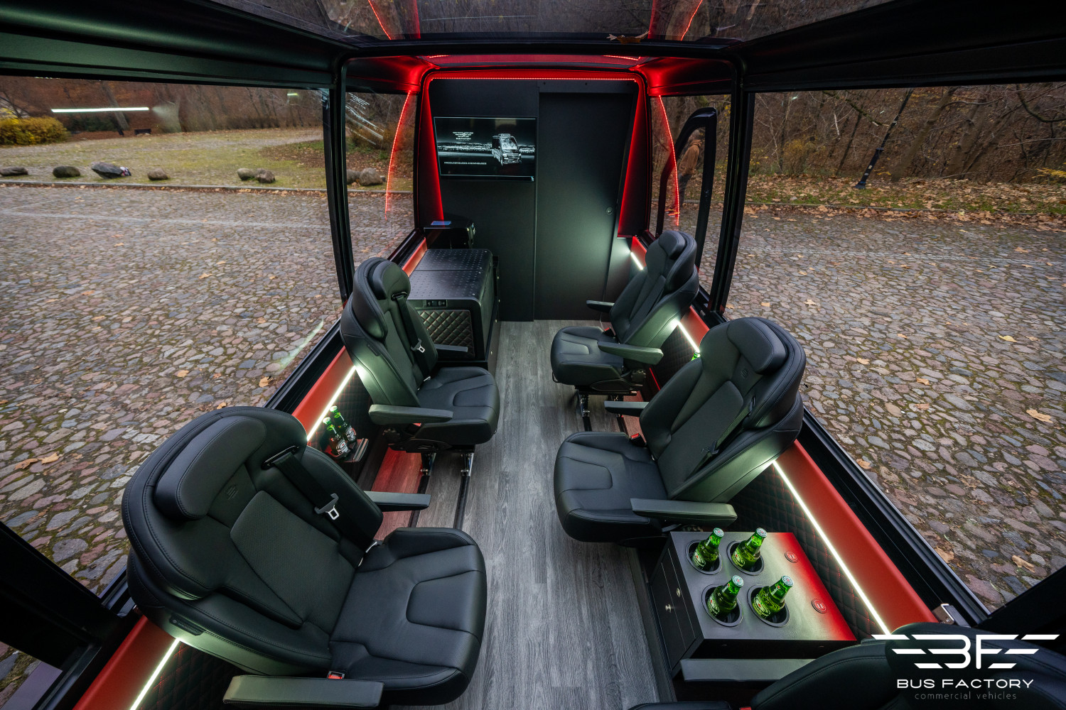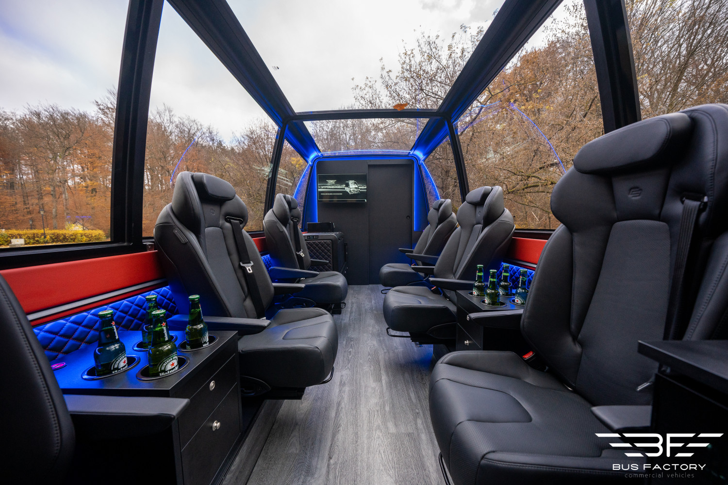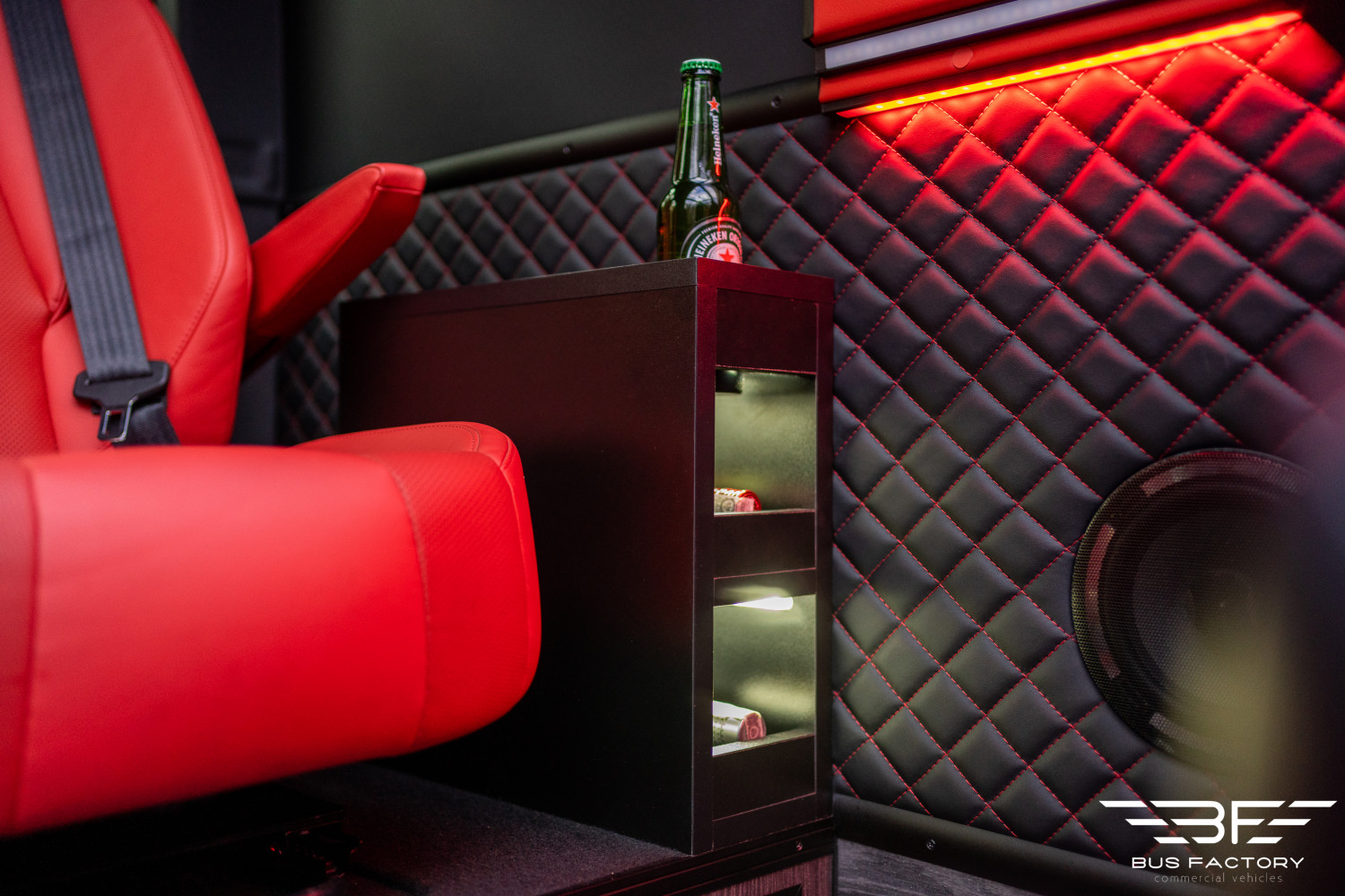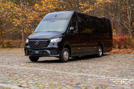 Mercedes-Benz Sprinter 519 w wersji „Cabrio” w układzie siedzeń 8+1. Bogate wyposażenie wnętrza, nowoczesne rozwiązania oraz atestowane systemy gwarantują Państwa Klientom bezpieczną i komfortową podróż.
