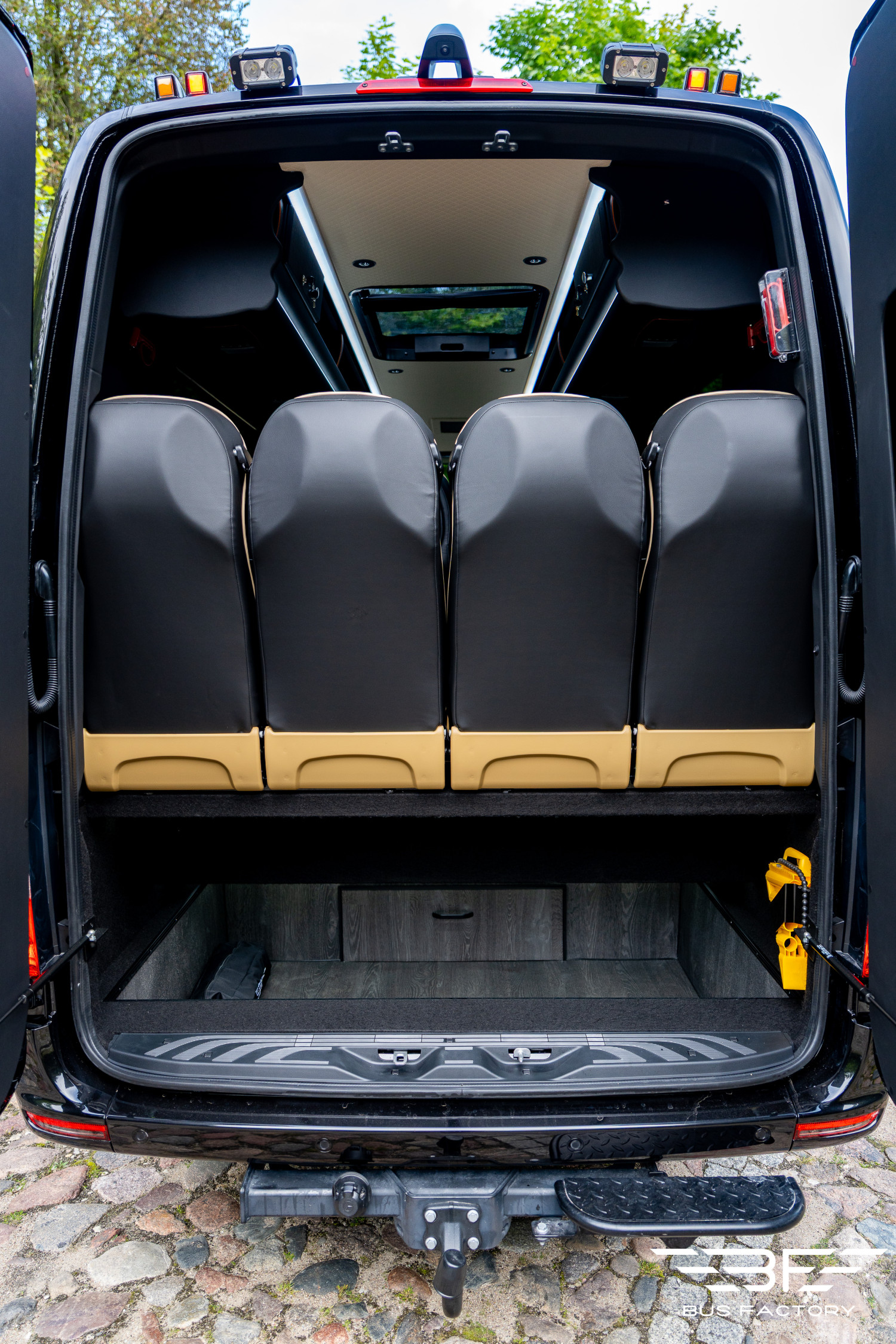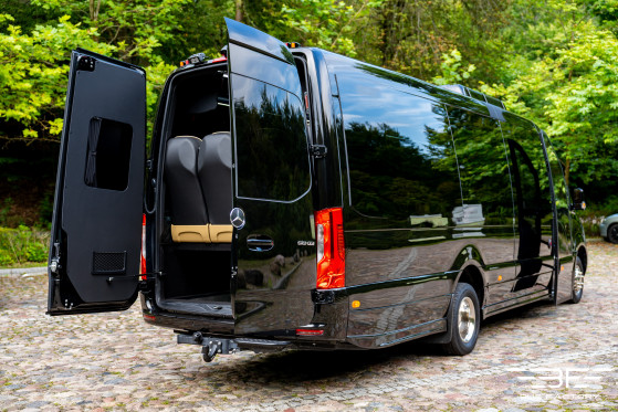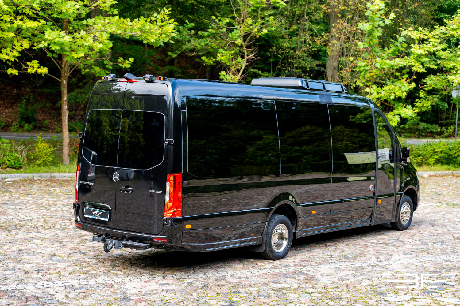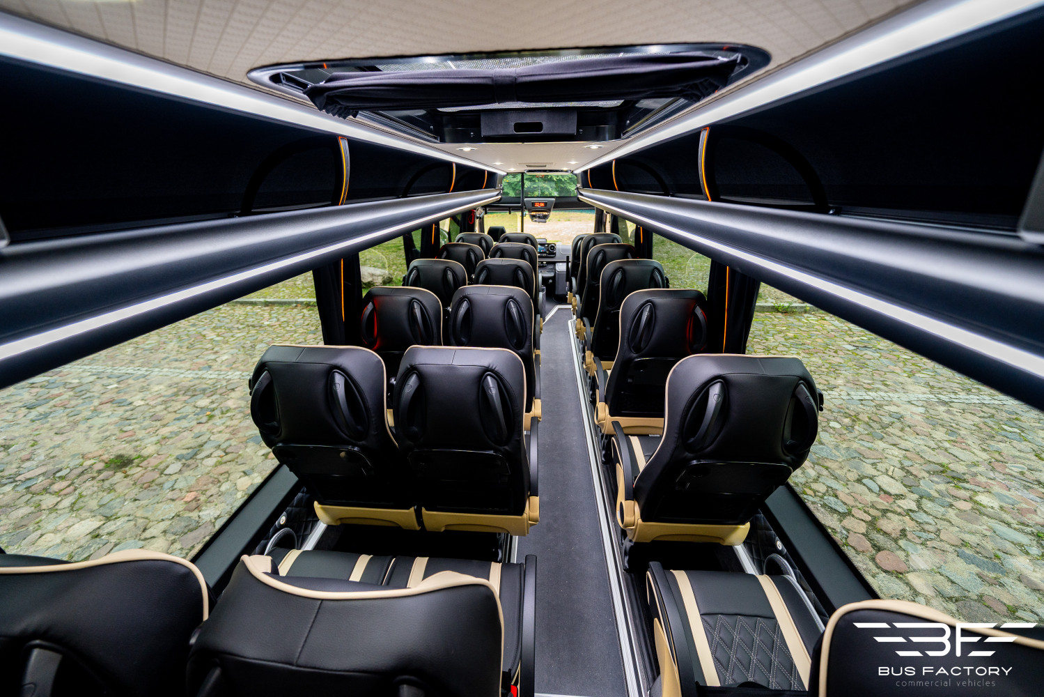 Mercedes-Benz Sprinter 519 XXL w wersji „Luxury Line” w układzie siedzeń 23+1 z dużym bagażnikiem. Bogate wyposażenie wnętrza, nowoczesne rozwiązania oraz atestowane systemy gwarantują Państwa Klientom bezpieczną i komfortową podróż.