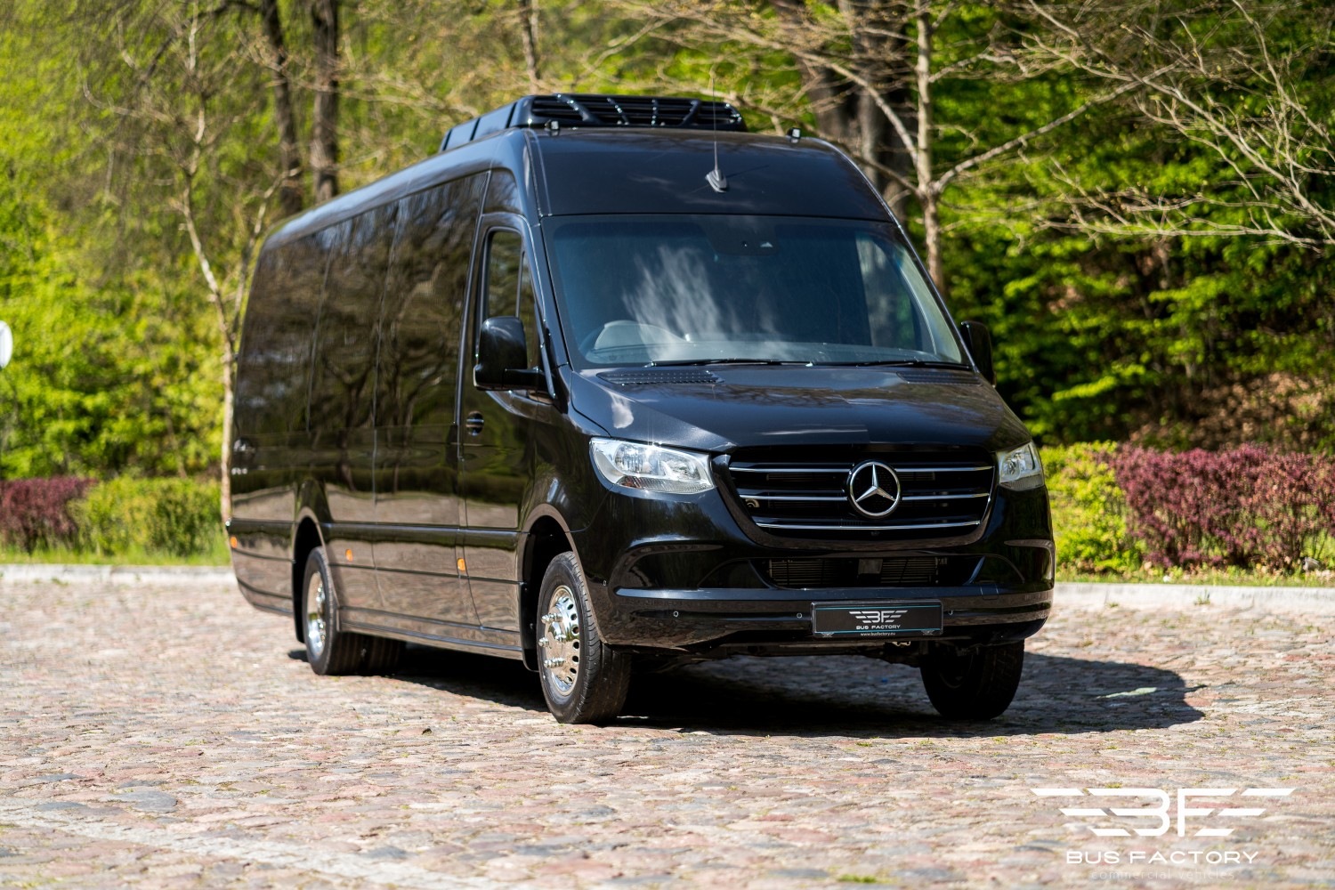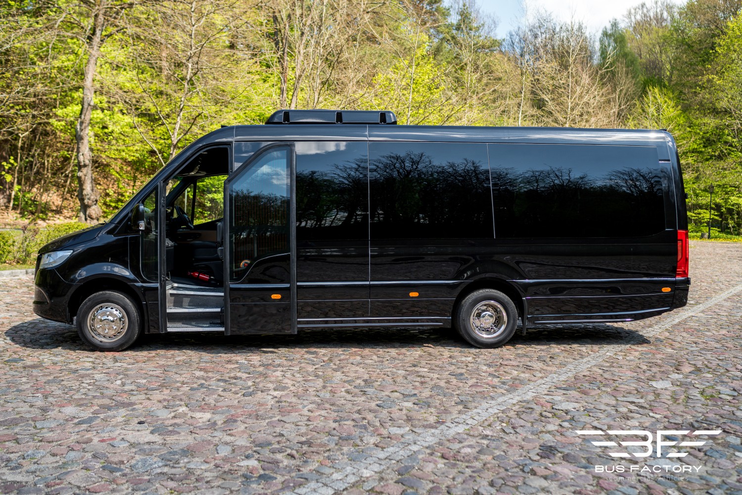 Mercedes-Benz Sprinter 519 XXL w wersji „Tourist Line” w układzie siedzeń 19+1 z dużym bagażnikiem. Bogate wyposażenie wnętrza, nowoczesne rozwiązania oraz atestowane systemy gwarantują Państwa Klientom bezpieczną i komfortową podróż.